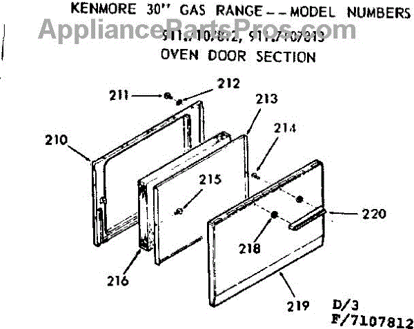 Parts for Kenmore 911.7107813 (9117107813, 911 7107813): Oven Door Section Parts