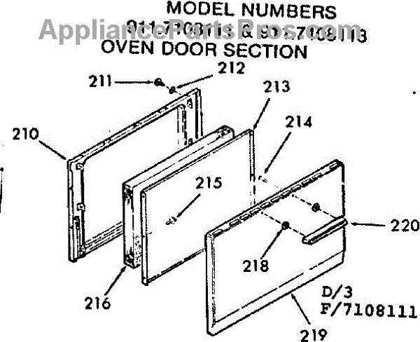 Parts for Kenmore 911.7108113 (9117108113, 911 7108113): Oven Door Section Parts