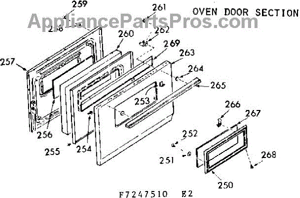 Parts for Kenmore 911.7247560 (9117247560, 911 7247560): Oven Door Section Parts