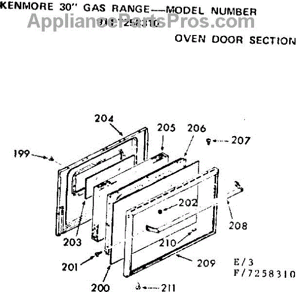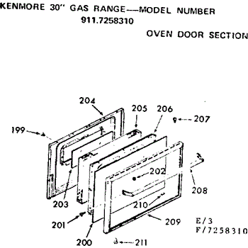Parts for Kenmore 911.7258310 (9117258310, 911 7258310): Oven Door Section Parts