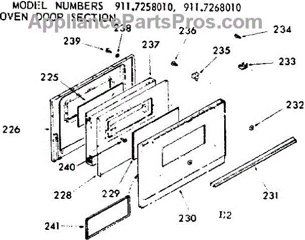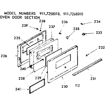 Parts for Kenmore 911.7268010 (9117268010, 911 7268010): Oven Door Section Parts