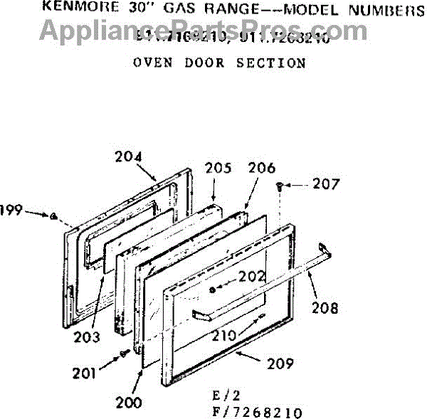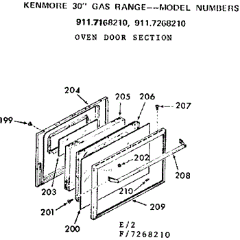 Parts for Kenmore 911.7268210 (9117268210, 911 7268210): Oven Door Section Parts