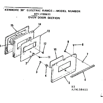Parts for Kenmore 911.9158411 (9119158411, 911 9158411): Oven Door Section Parts