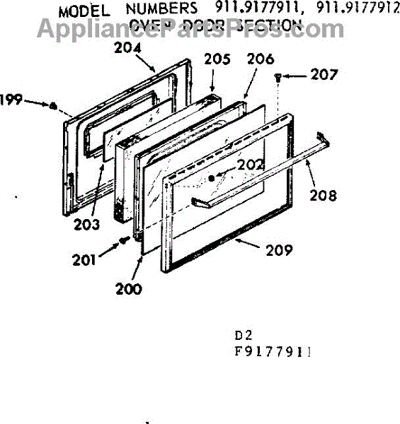 Parts for Kenmore 911.9177911 (9119177911, 911 9177911): Oven Door Section Parts
