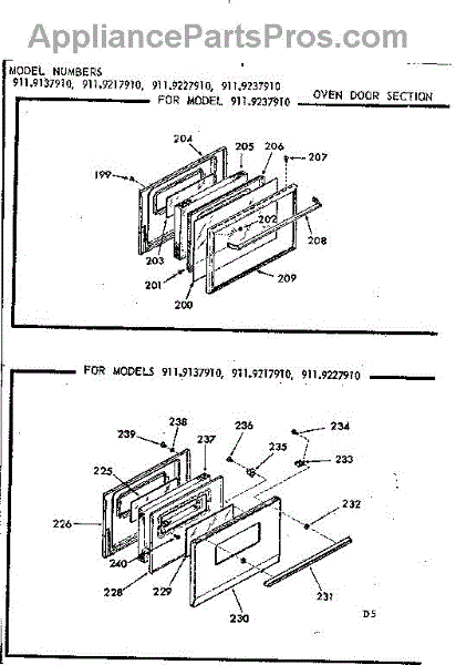 Parts for Kenmore 911.9217910 (9119217910, 911 9217910): Oven Door Section Parts