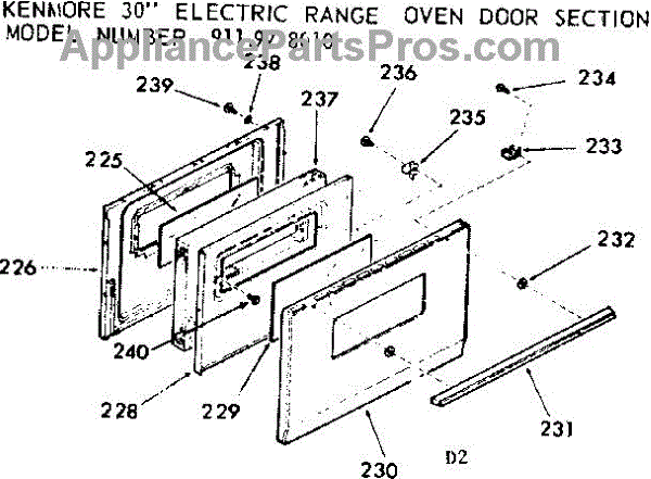Parts for Kenmore 911.9218010 (9119218010, 911 9218010): Oven Door Section Parts