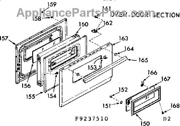 Parts for Kenmore 911.9237510 (9119237510, 911 9237510): Oven Door Section Parts