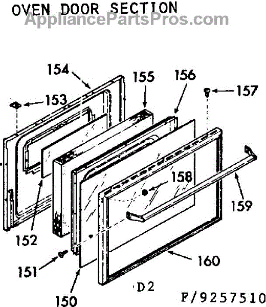 Parts for Kenmore 911.9257520 (9119257520, 911 9257520): Oven Door Section Parts