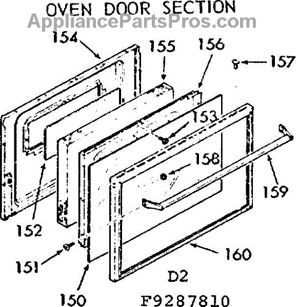 Parts for Kenmore 911.9287810 (9119287810, 911 9287810): Oven Door Section Parts