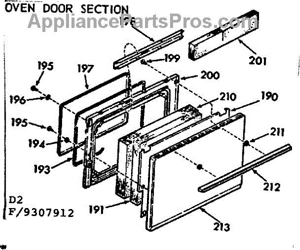 Parts for Kenmore 911.9307912 (9119307912, 911 9307912): Oven Door Section Parts
