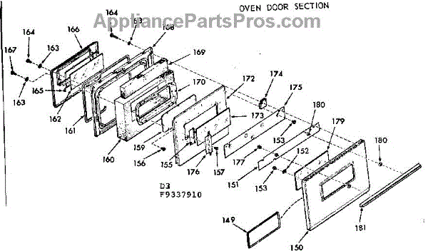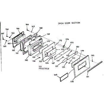 Parts for Kenmore 911.9337910 (9119337910, 911 9337910): Oven Door Section Parts