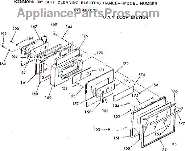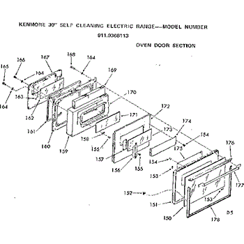 Parts for Kenmore 911.9368113 (9119368113, 911 9368113): Oven Door Section Parts