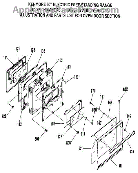 Parts for Kenmore 911.9372993 (9119372993, 911 9372993): Oven Door Section Parts