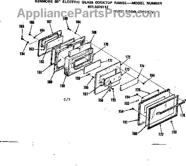 Parts for Kenmore 911.9378112 (9119378112, 911 9378112): Oven Door Section Parts