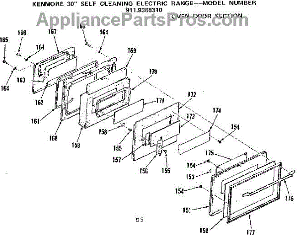 Parts for Kenmore 911.9388310 (9119388310, 911 9388310): Oven Door Section Parts