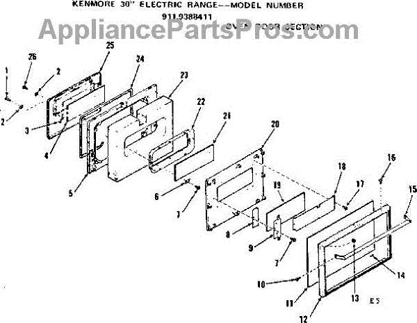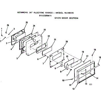 Parts for Kenmore 911.9388411 (9119388411, 911 9388411): Oven Door Section Parts