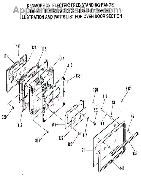 Parts for Kenmore 911.9592591 (9119592591, 911 9592591): Oven Door Section Parts