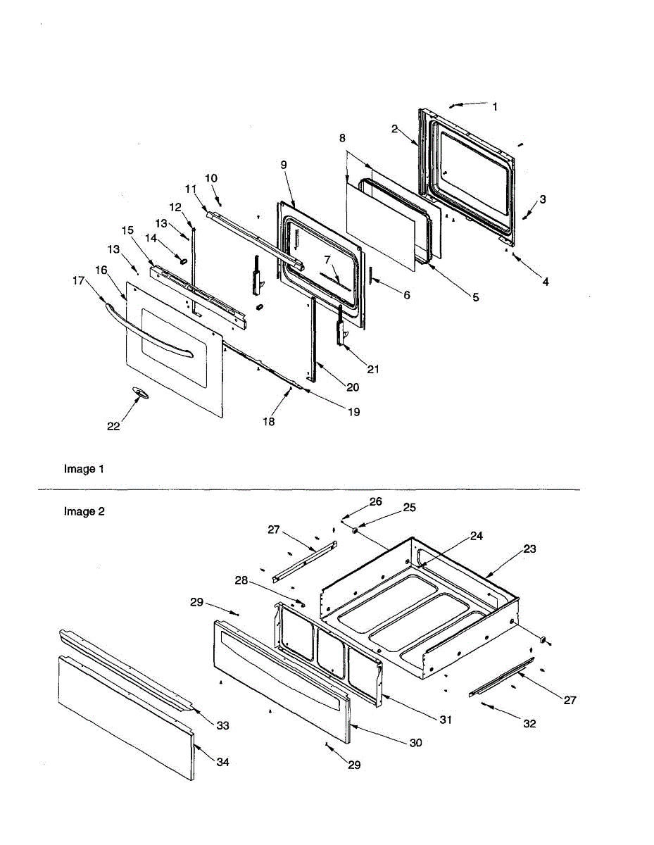 Parts for Amana ACF3325AC-PACF3325AC0: Oven Door / Storage Drawer Parts