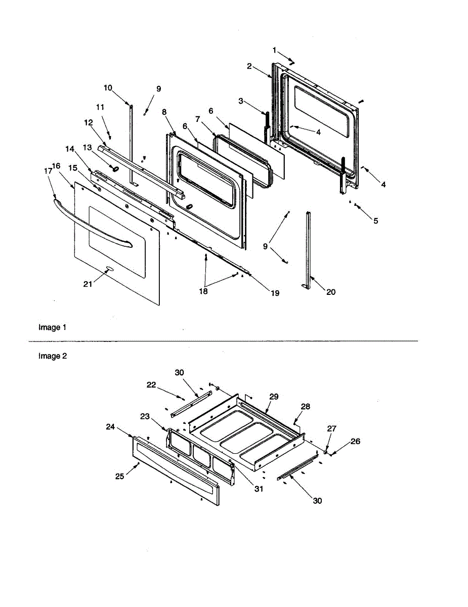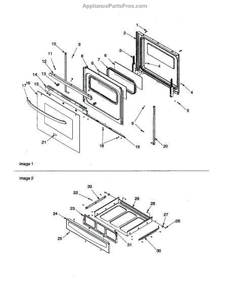 Parts for Amana ACF3335AW-PACF3335AW2: Oven Door And Storage Drawer Parts