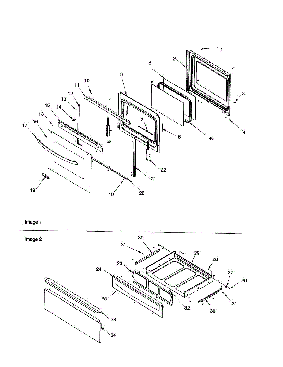 Parts for Amana ACF3355AW-PACF3355AW1: Oven Door And Storage Drawer Parts