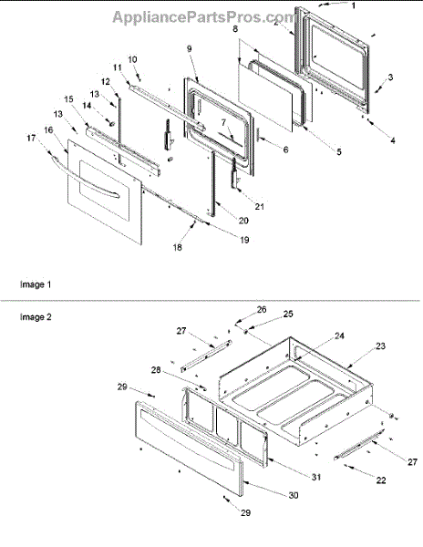 Parts for Amana ACF4205AK-PACF4205AK0: Oven Door And Storage Drawer Parts