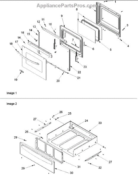 Parts for Amana ACF4255AW-PACF4255AW0: Oven Door And Storage Drawer Parts