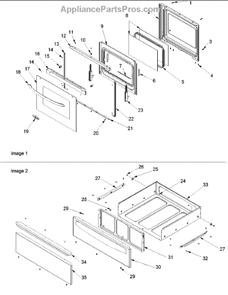 Parts for Amana ACF4265AB0-PACF4265AB0: Oven Door And Storage Drawer Parts