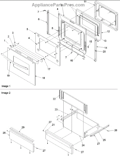 Parts for Amana ARDS802SS-P1131948NSS: Oven Door And Storage Drawer Parts