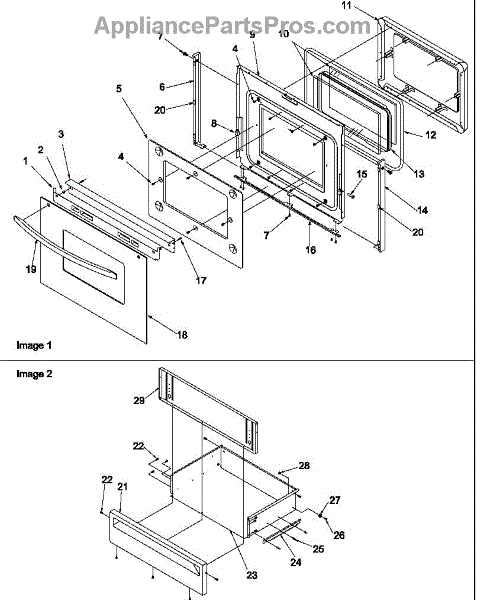 Parts for Amana ARG7800E-P1143365NE: Oven Door And Storage Drawer Parts