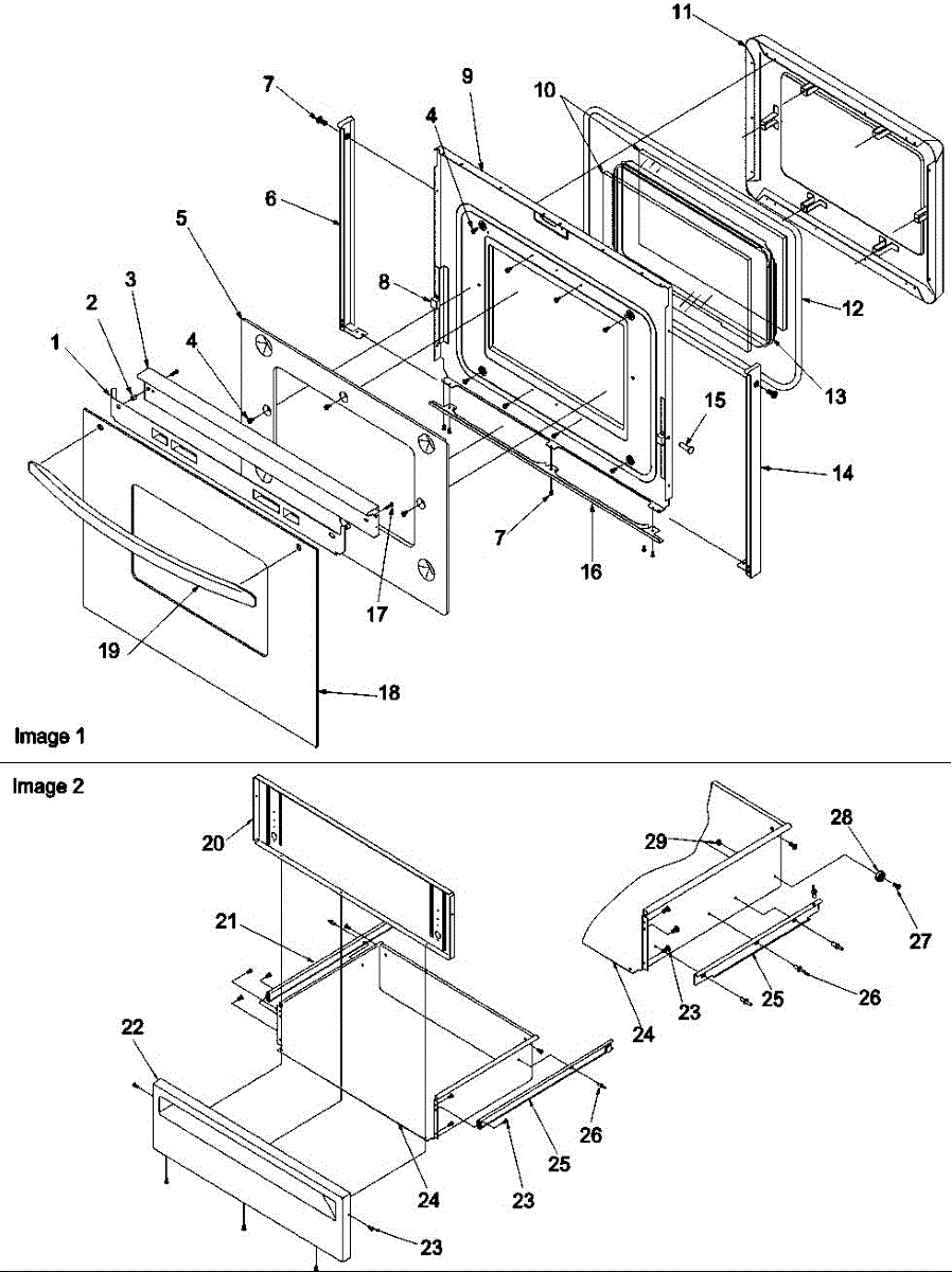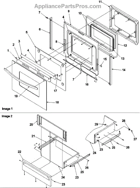 Parts for Amana ARGS7650LL-P1130762NLL: Oven Door & Storage Drawer Parts