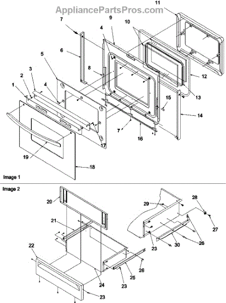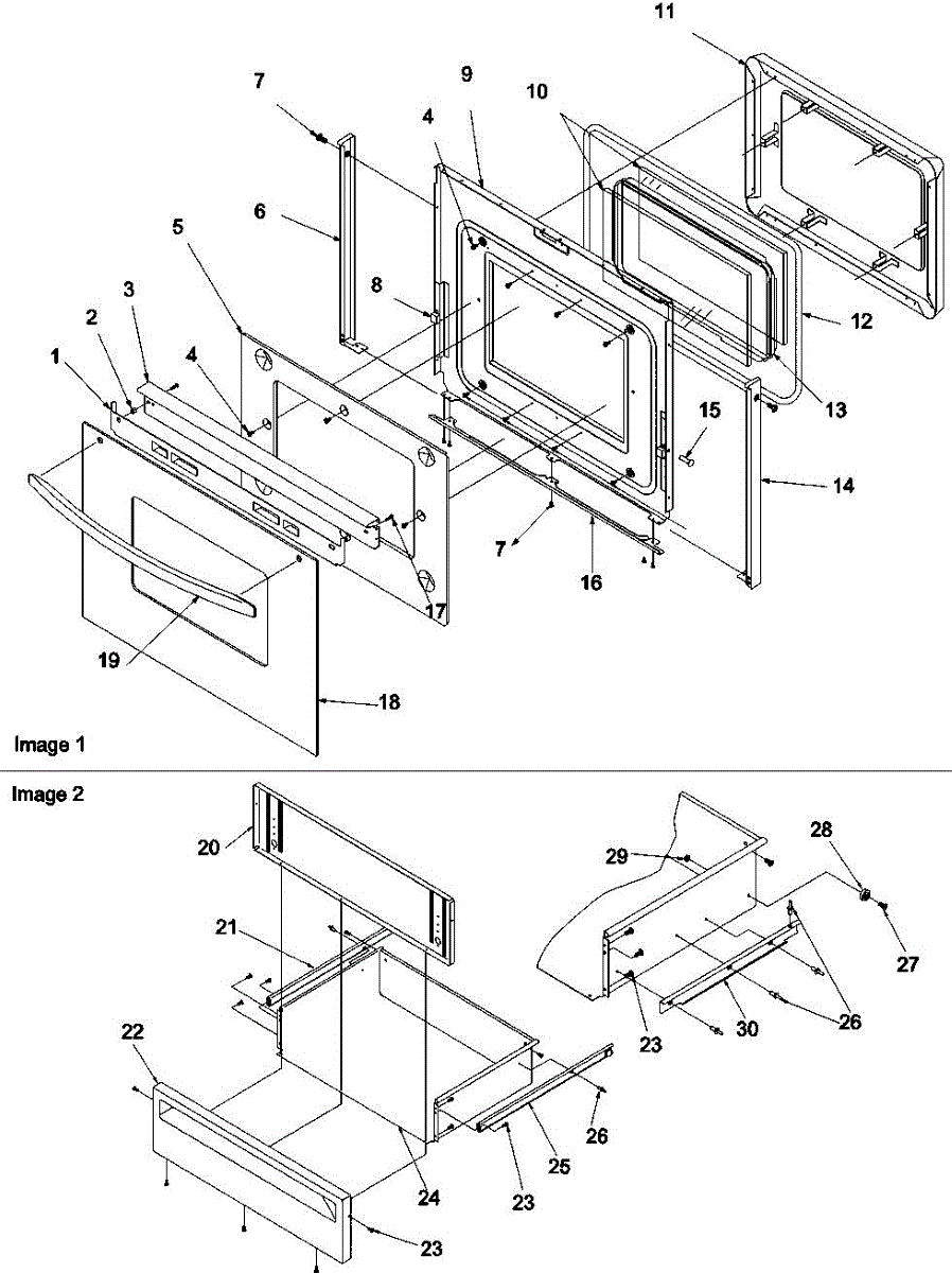 Parts for Amana ARGS7650WW-P1130752NWW: Oven Door & Storage Drawer Parts