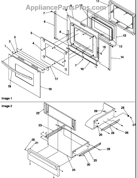 Parts for Amana ARRS6550E-P1130666NE: Oven Door And Storage Drawer Parts