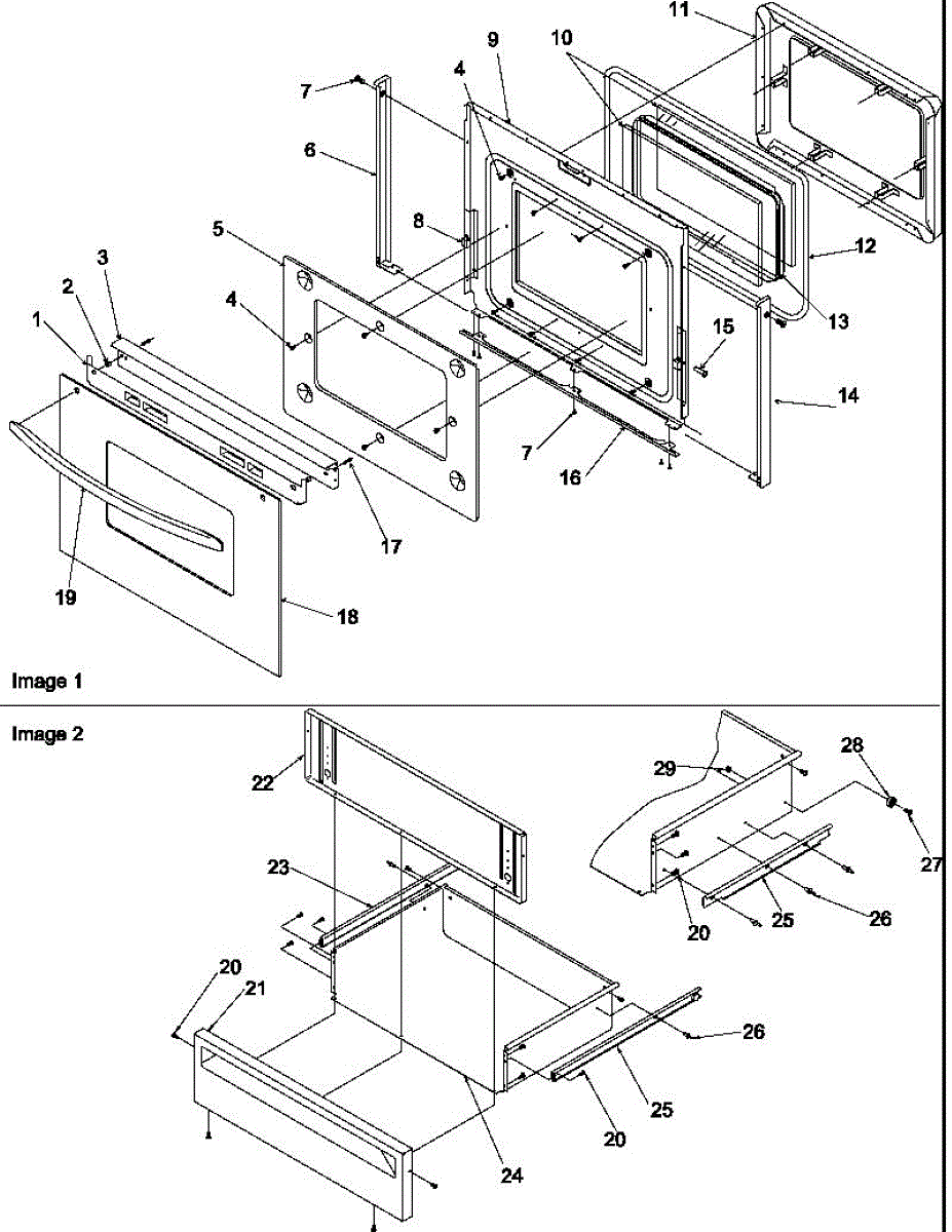 Parts for Amana ARRS6550E-P1130677NE: Oven Door And Storage Drawer Parts