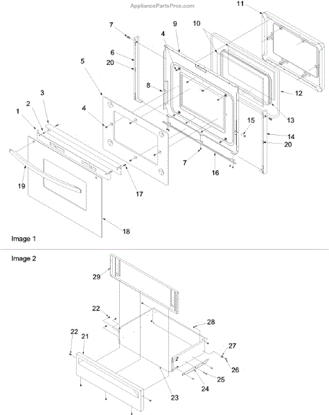 Parts for Amana OEMA1-ARG7600LL: Oven Door And Storage Door Parts