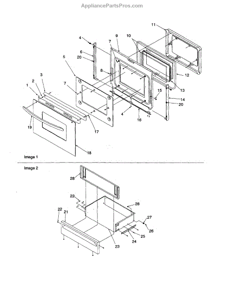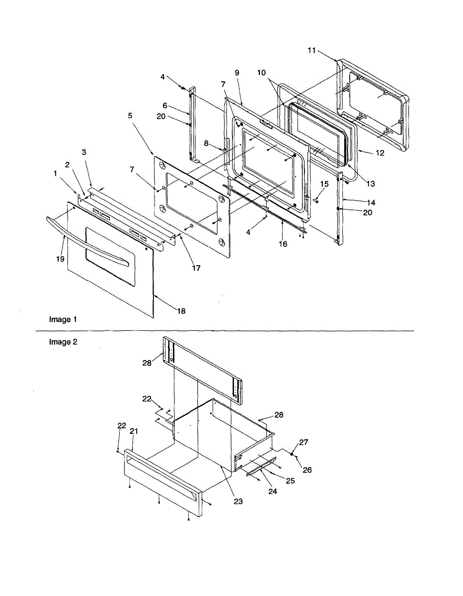 Parts for Caloric CSG7601WW/P1143398NWW: Oven Door And Storage Door Parts