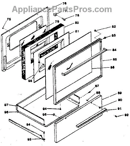 Parts for Kenmore 119.9738810 (1199738810, 119 9738810): Oven Door And Storage Drawer Parts