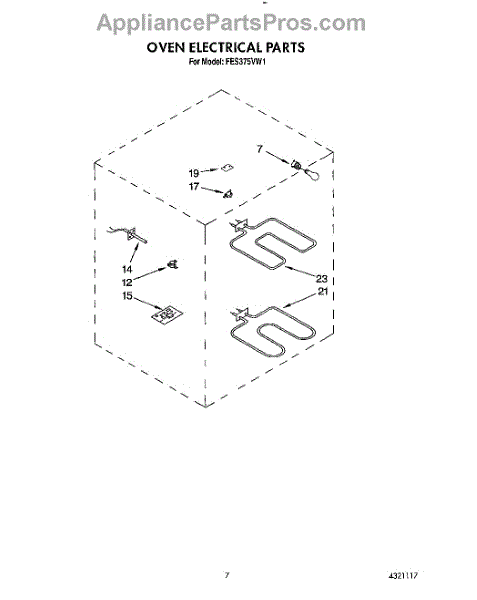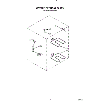 This electric range broil element installs at the top of the oven to deliver direct radiant heat for broiling. Replacing a burned-out or damaged element restores fast, even broil performance and consistent top heat.
