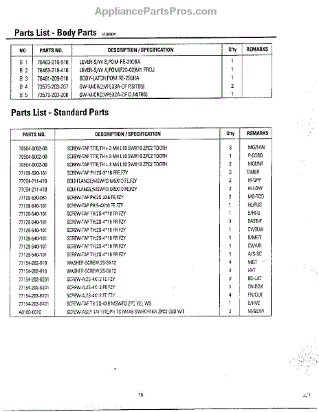 Parts for Samsung MU3050W/XAA: Oven Exploded View And Parts