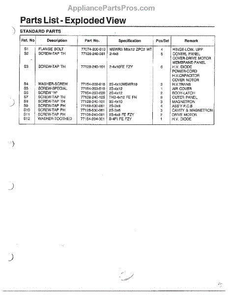 • Secures panels, brackets or trim to the appliance chassis