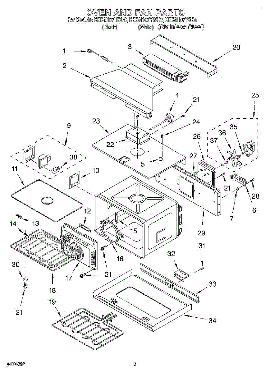 Parts for Kitchenaid KEBN107YWH0: 02 - Oven And Fan Parts