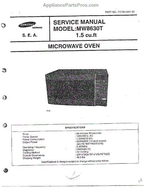 Parts for Samsung MW8630T/XAA: Oven Front Page Parts