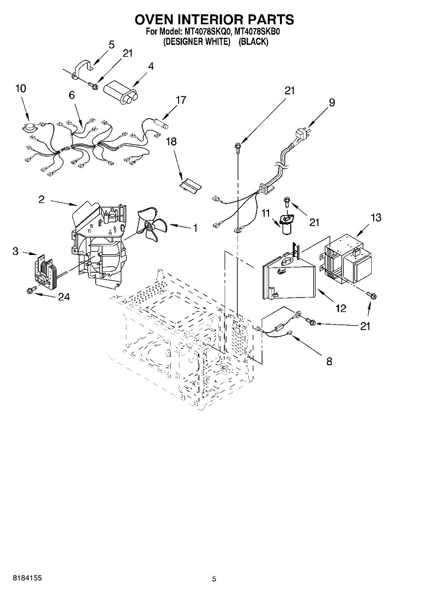 Parts for Whirlpool MT4078SKB0: 05 - Oven Interior Parts