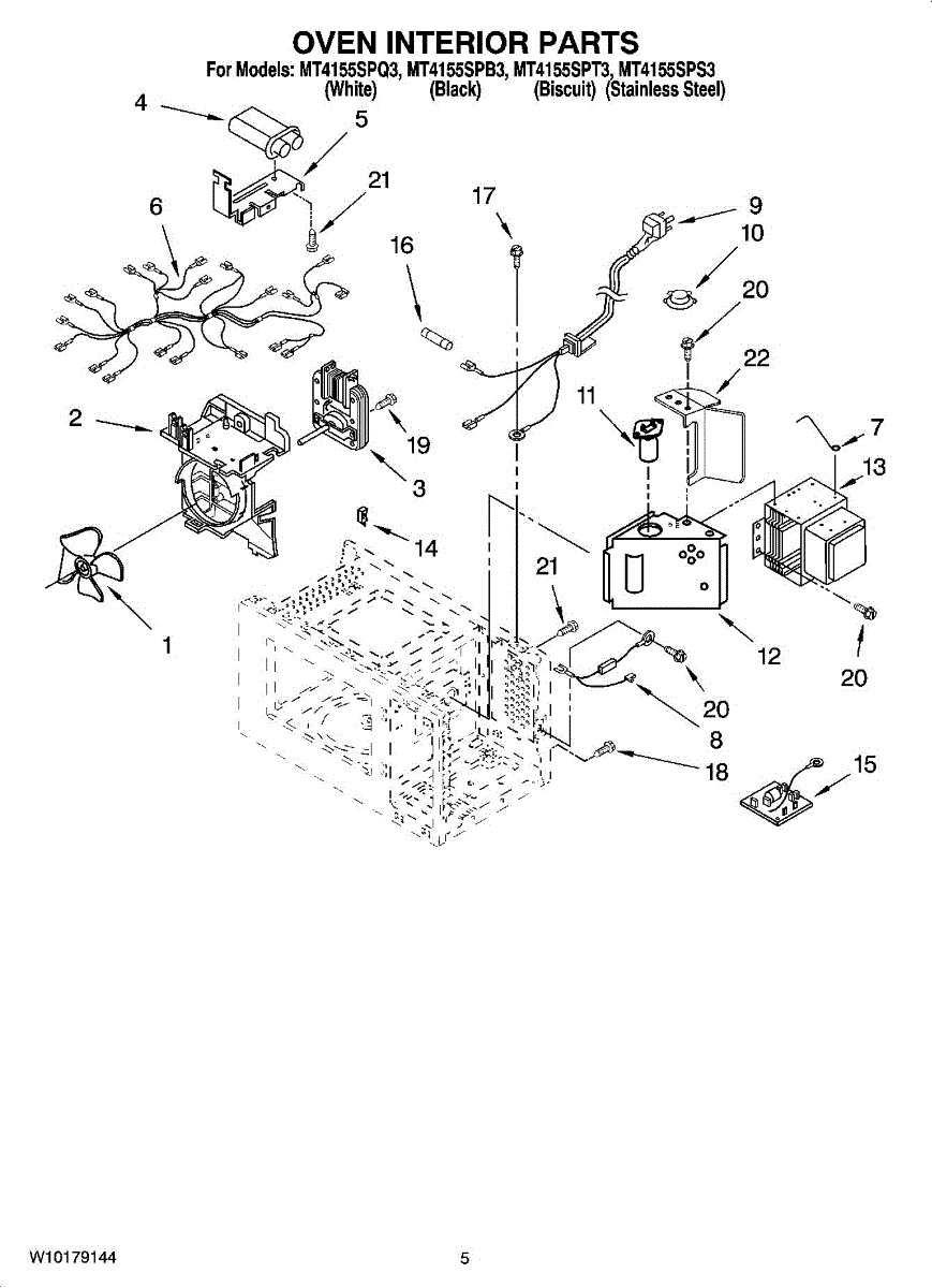 Parts for Whirlpool MT4155SPT3: 05 - Oven Interior Parts