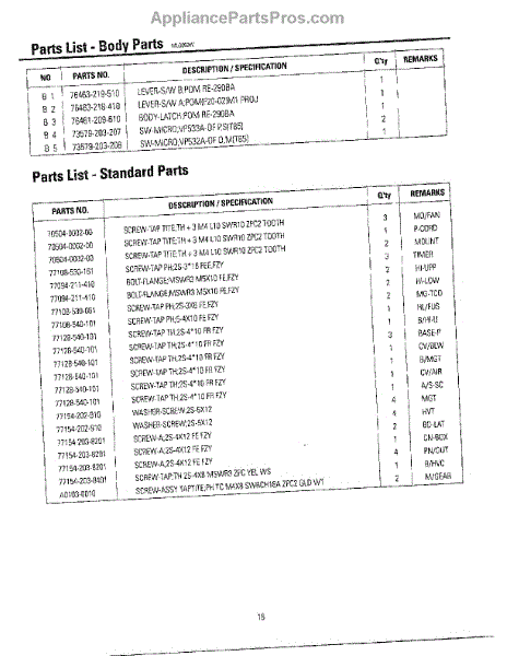 Parts for Samsung MW3050W/XAA: Oven List Page 3 Parts