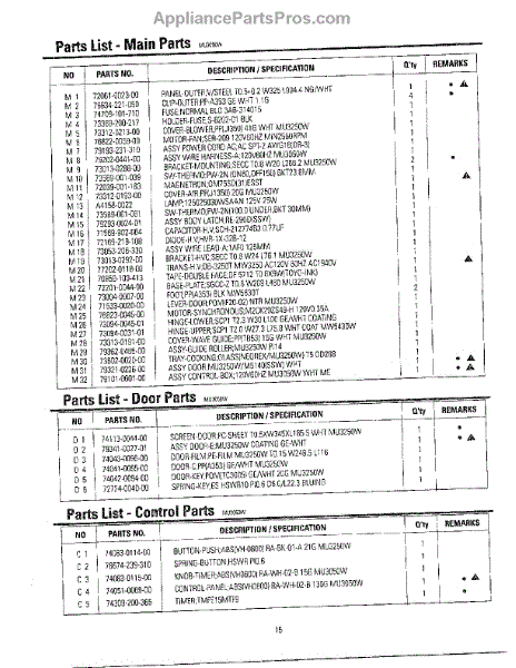Parts for Samsung MW3050W/XAA: Oven List Page 2 Parts
