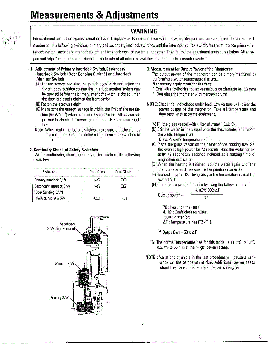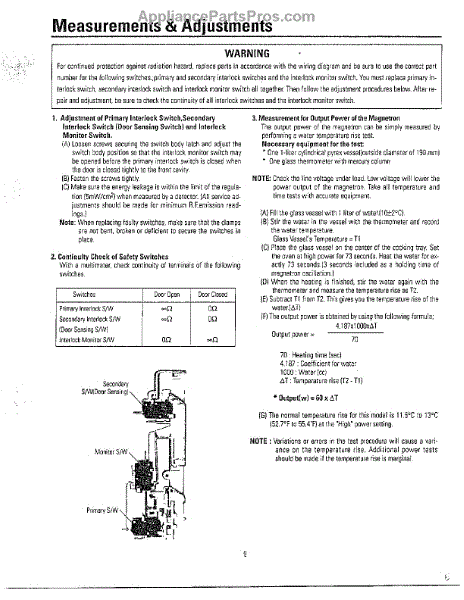 Parts for Samsung MW3580T/XAA: Oven Measurements And Adjustments Parts