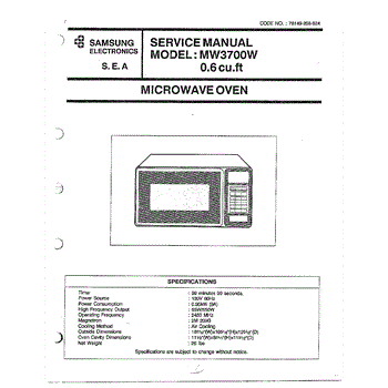 Parts for Samsung MW3700W/XAA: Oven Microwave Oven / Service Manual Parts