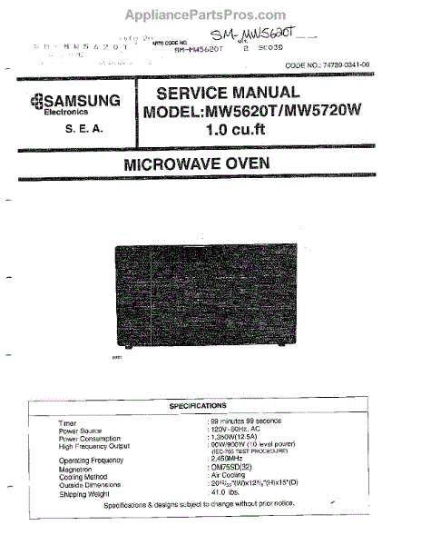 Parts for Samsung MW5720W/XAA: Oven Microwave Oven Parts