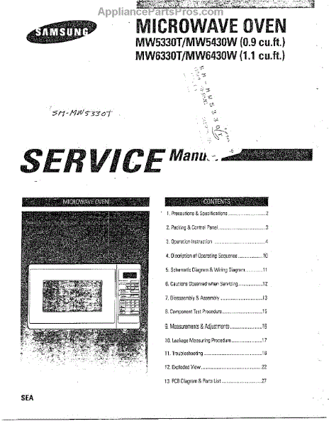 Parts for Samsung MW6330T/XAA: Oven Microwave Oven / Contents Parts