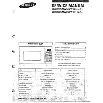 Parts for Samsung MW5330T/XAA: Oven Microwave Service Manual Information Parts